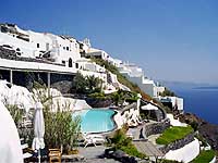 PERIVOLAS TRADITIONAL HOUSESFaithful to the tradition of unique architecture of Santorini, Perivolas Traditional Houses is a restored group of 300 year- old caves that were once the homes, wineries and stables of indigenous fishermen and farmers. With the help of native craftsmen using volcanic raw materials, this historical setting has been transformed into an superior complex of 17 private houses. Perivolas Traditional Houses is set within an amphitheatrical landscape of curves stepping down to a central stone terrace with a pool that flows over the edge of the cliff into an Aegean horizon. Next to the pool, an old winery is reborn as an indoor cafe and a poolside bar. Preserving the original structures and remaining true to local architectural traditions, no effort has been spared to conserve the aesthetics of the caves, while modern comforts and amenities have been added to satisfy our guests’ needs. Each private air-conditioned Perivolas house with its own stone terrace overlooking Santorini's famous Caldera, is unique, combining the old with the new, furnished with island antiques and handmade objects that speak of simple elegance and a refined personal touch. Perivolas Traditional Houses feature vaulted ceilings, spacious rooms, domed bathrooms and fully equipped kitchenettes. Junior Suites have open-plan layouts, integrating bedroom and sitting room into one large space, while Superior Suites have a bedroom separate from the living room. Studios are smaller versions of the Junior Suites, with a sitting area. Each house contains one private bath with shower. With Perivolas' hospitality you'll feel the luxury of pampering with the comforts of home. Front desk, luggage service, daily maid service, room service, in house laundry and pressing. Daily newspapers, internet access, library, travel desk. Sailing, scuba diving. Beauty treatments, a choice of massage sessions. The grounds have been landscaped to provide seating and eating areas: Set by the poolside cafe is the breakfast buffet with home-made marmalades, apple-pie and cookies, oven baked bread, freshly squeezed juices and our own production of seasonal fruit. Brunch or light Mediterranean dishes by the pool feature vegetables grown in little Perivolas garden. Enjoy a cocktail on your lounge chair by the poolside bar and be seduced by Oia's sunset. Linger at the bar over a glass of wine from the extensive Perivolas wine list, while candlelight reflects off hand-sculpted walls. |