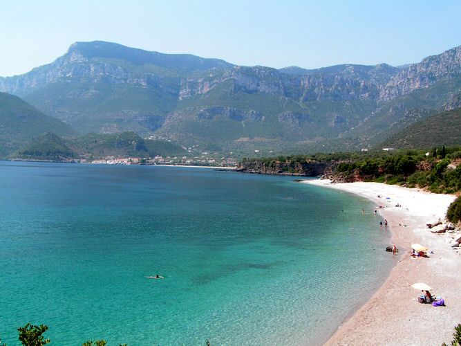 Kyparissi beaches are among the best in Greece. The main beach between Paralia and Metropolis is a long stretch of mostly black and white pebbles or stones with a sea the color that people dream of. This is usually the most crowded which means any month except August there may be a dozen or so people spread out along its