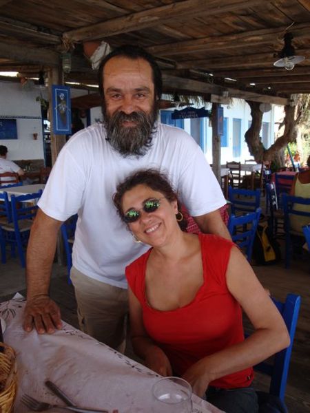 we have been eating at the Blue Sardine, the last fish taverna on the sea. It is owned by Kosta who is actually not from Lesvos. He comes from a small village in Macedonia, the same village that Alexis Zorba, the hero of Zorba the Greek, was from. There are certainly