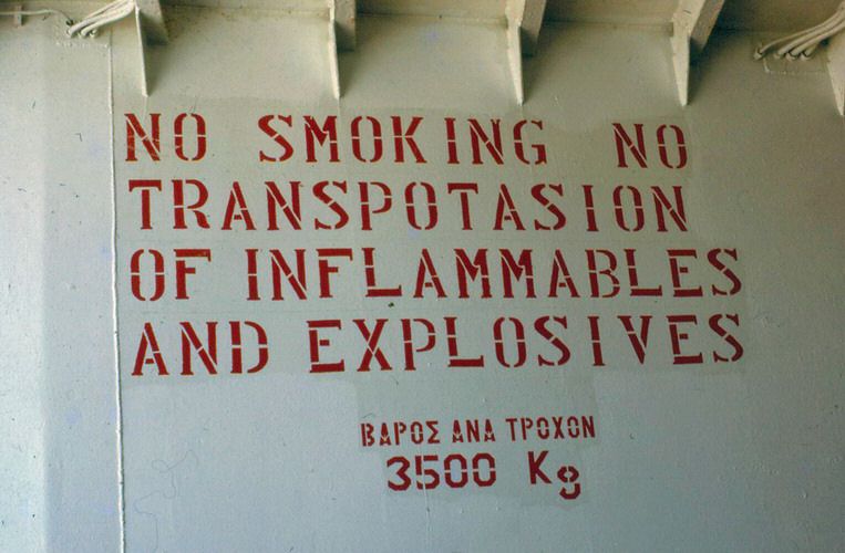 On a ferry boat. But if you can't transpot inflammables or explosives why does it matter if you smoke?