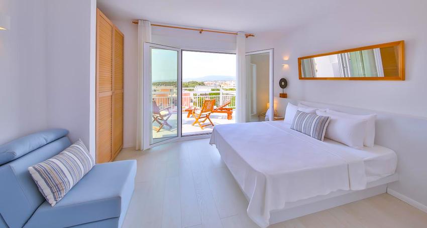 along with free toiletries and hairdryer. A satellite TV is available in every room. Each opens to a balcony with views of the azure waters. Air conditioning comes standard. Note that this hotel is on the same property as the Grand Hotel Egnatia listed above so there may be some confusion as to which is which.