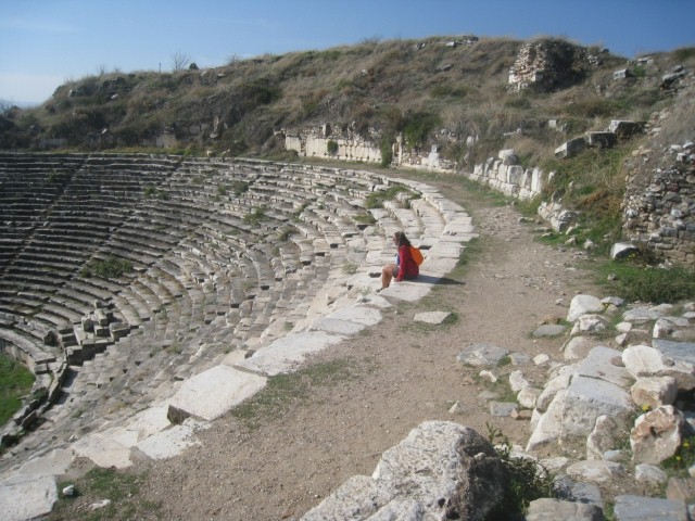 major monuments there. My sister and I managed to see most of Afrodisias’ masterful constructions and reconstructions, although we lamented the lack of a guide or proper guidebook. Consequently, we were puzzled by many things, such as, why the Theatre also had theTheatre Baths. Were they for the actors or the audience? Did the sarcophagi with lids still have bodies in them?